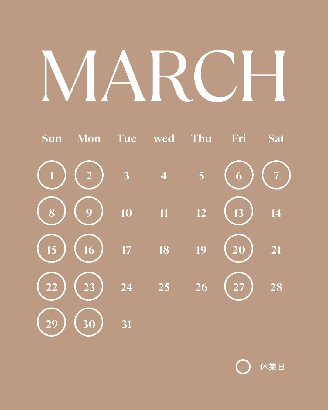 いつも当工房をご利用いただき、誠にありがとうございます。 3月の営業日につきまして、以下の通りお知らせいたします。 3月の営業スケジュール 定休日: 毎週 日曜・月曜・金曜 臨時休業: 3月7日(土) ご来店を心よりお待ちしております。
